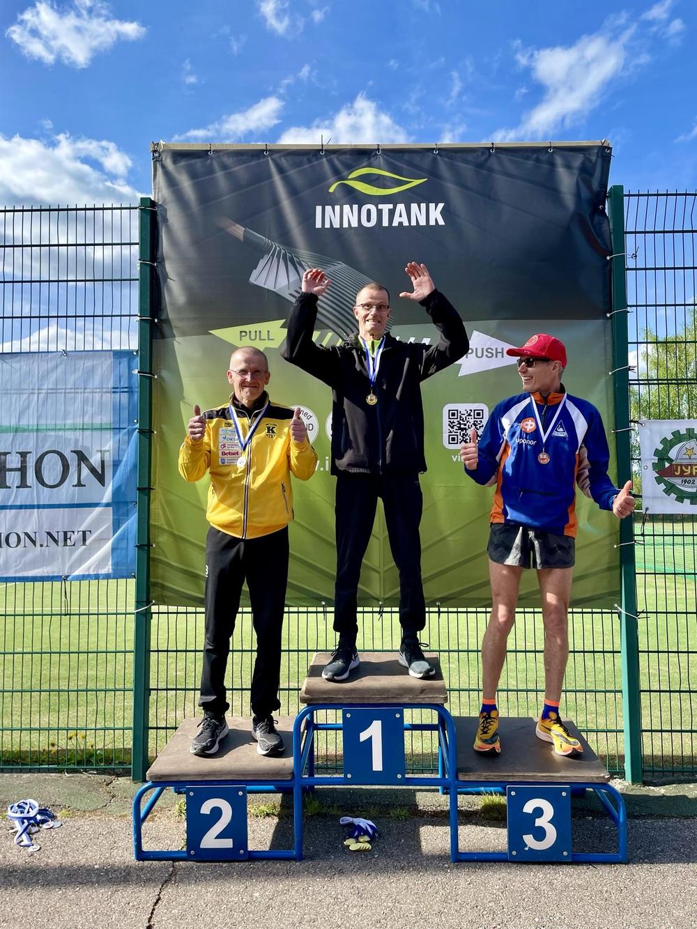 Kari Kinnunen nappasi SM-pronssia sarjassa M55 ajalla 1.22.29. Nyt Karilla on neljän vuoden mitaliputki tältä matkalta .