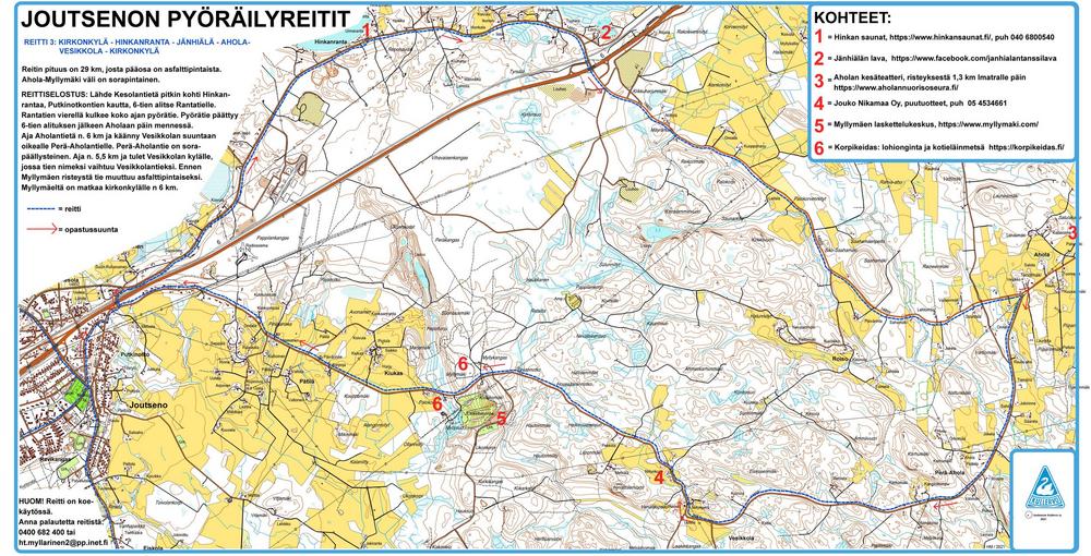 Otamme mielellämme parannusehdotuksia reiteistä, puh 0400 682 400 tai ht.myllarinen2@pp.inet.fi