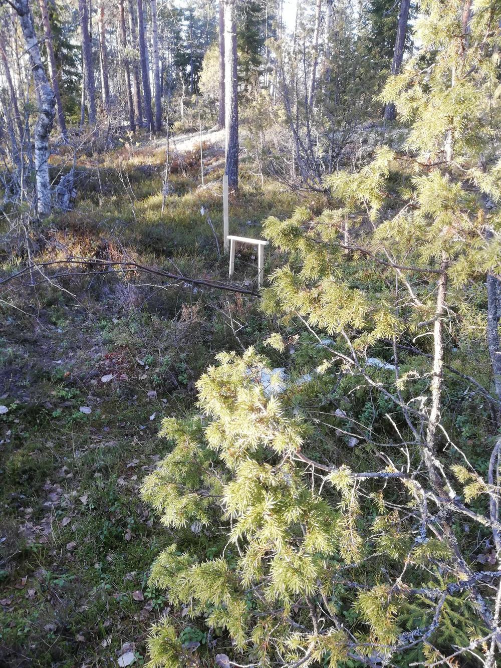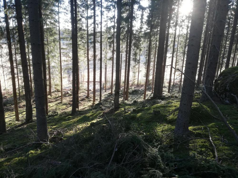 Loppusuora, kangasmaastoa, vanhaa kuusikkoa, rastipukki siellä jossain, ilta-aurinkoinen rinne ja katos vaikka rastimiehelle.